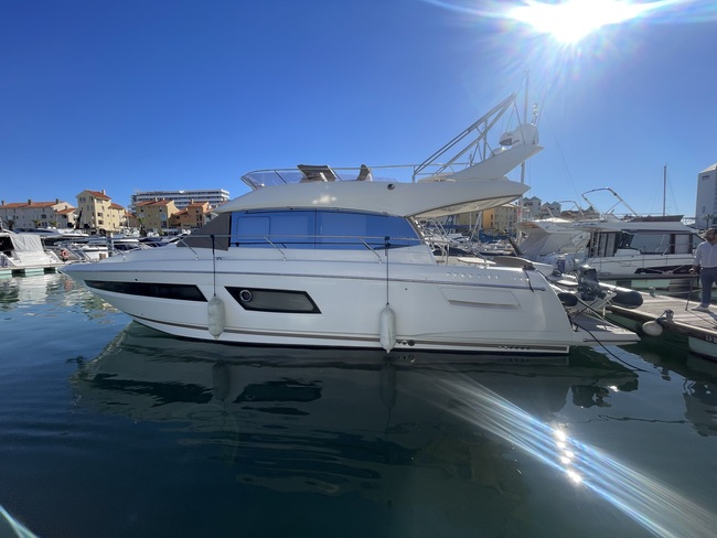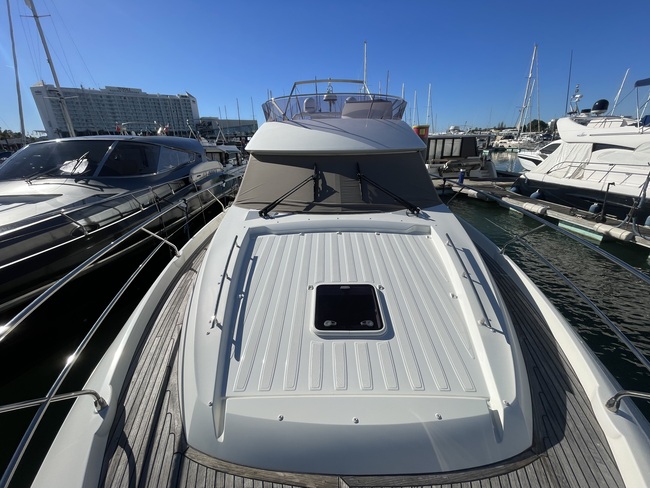 Este magnífico Prestige 450 Fly, uma combinação perfeita de design, conforto e desempenho, concebido pela Garroni Design. Este modelo icónico impressiona pelos seus amplos espaços, acabamentos de alta qualidade e equipamento completo, concebido para navegar com total tranquilidade. O seu espaçoso flybridge convida ao relaxamento com a sua ampla área para banhos de sol, zona de refeições e posto de comando panorâmico. No interior, a luz natural inunda um elegante salão com mobiliário requintado, uma cozinha totalmente equipada e duas cabines duplas com casas de banho privativas, oferecendo todo o conforto de um verdadeiro apartamento sobre as águas. Em termos de equipamento, esta unidade é rara no mercado: ar condicionado reversível, plataforma de banho submersa, passadiço hidráulico, gerador, eletrónica completa, guincho elétrico, hélice de proa e muito mais. Cada detalhe foi concebido para o prazer e a facilidade de navegação. Um verdadeiro achado para este iate super equipado, pronto para lhe proporcionar momentos inesquecíveis no mar.